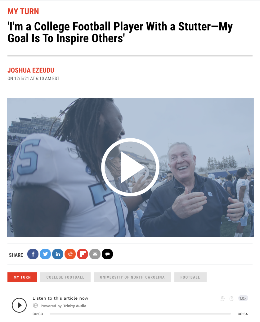 In a personal essay, Joshua Ezeudu talks about how his stutter is something he uses to inspire others.